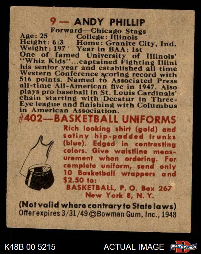 1948 Bowman #9 Andy Phillip 4 - VG/EX