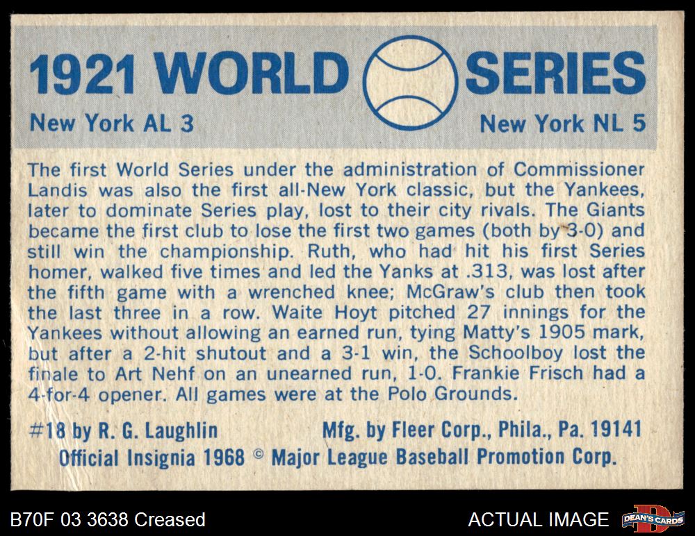 1970 Fleer World Series #18  1921 Giants vs. Yankees Front Thumbnail