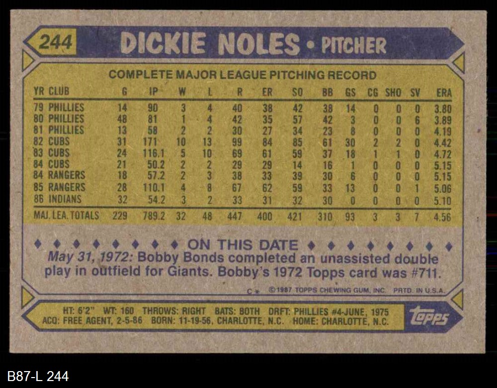 1987 Topps #244 Dickie Noles 8 - NM/MT
