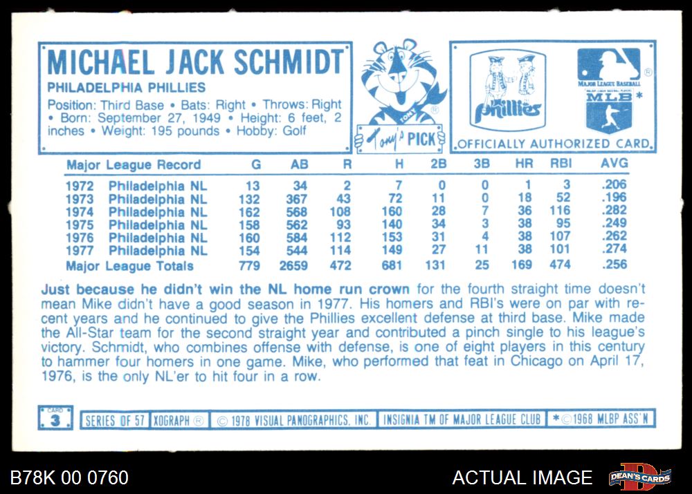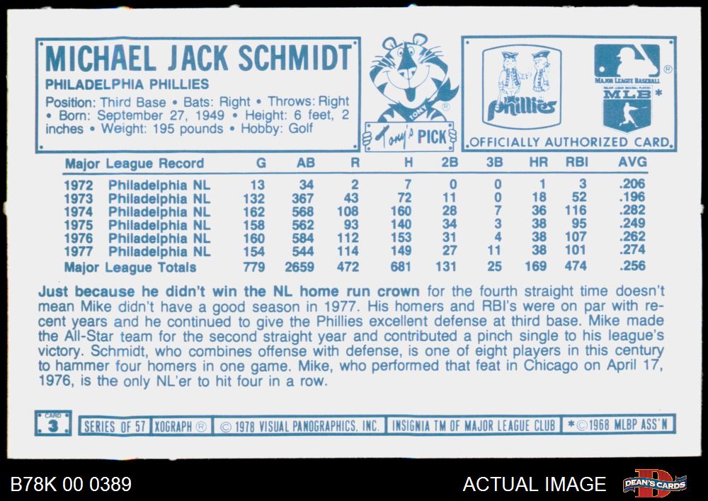1978 Kellogg's #3 Mike Schmidt