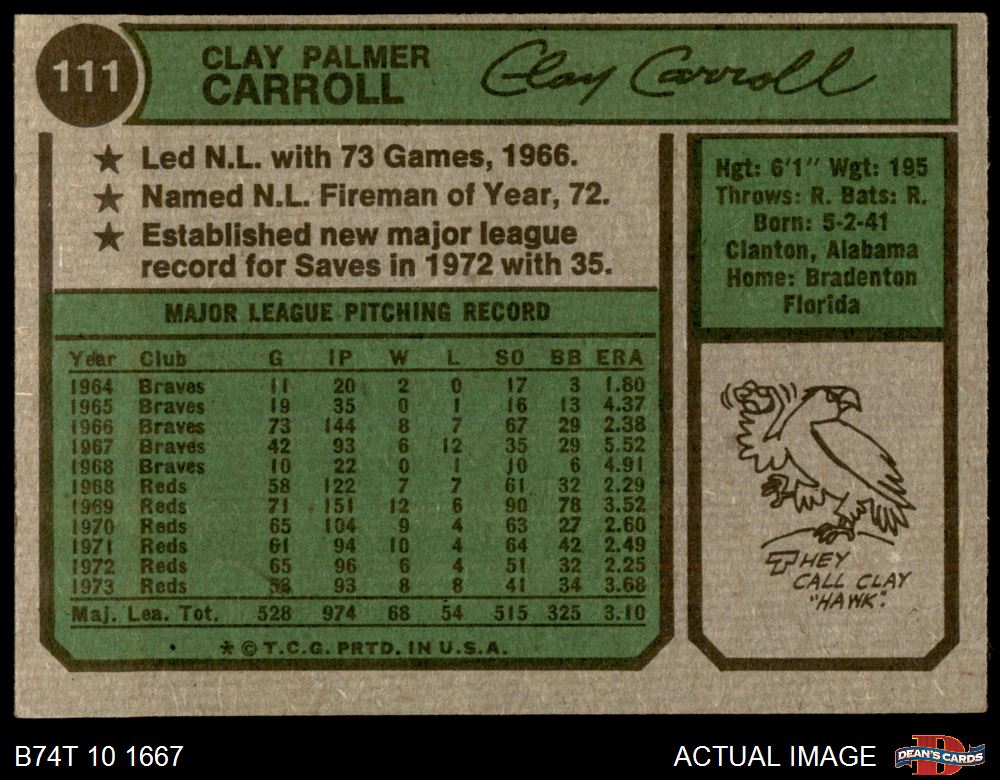 1974 Topps #111 Clay Carroll 4 - VG/EX