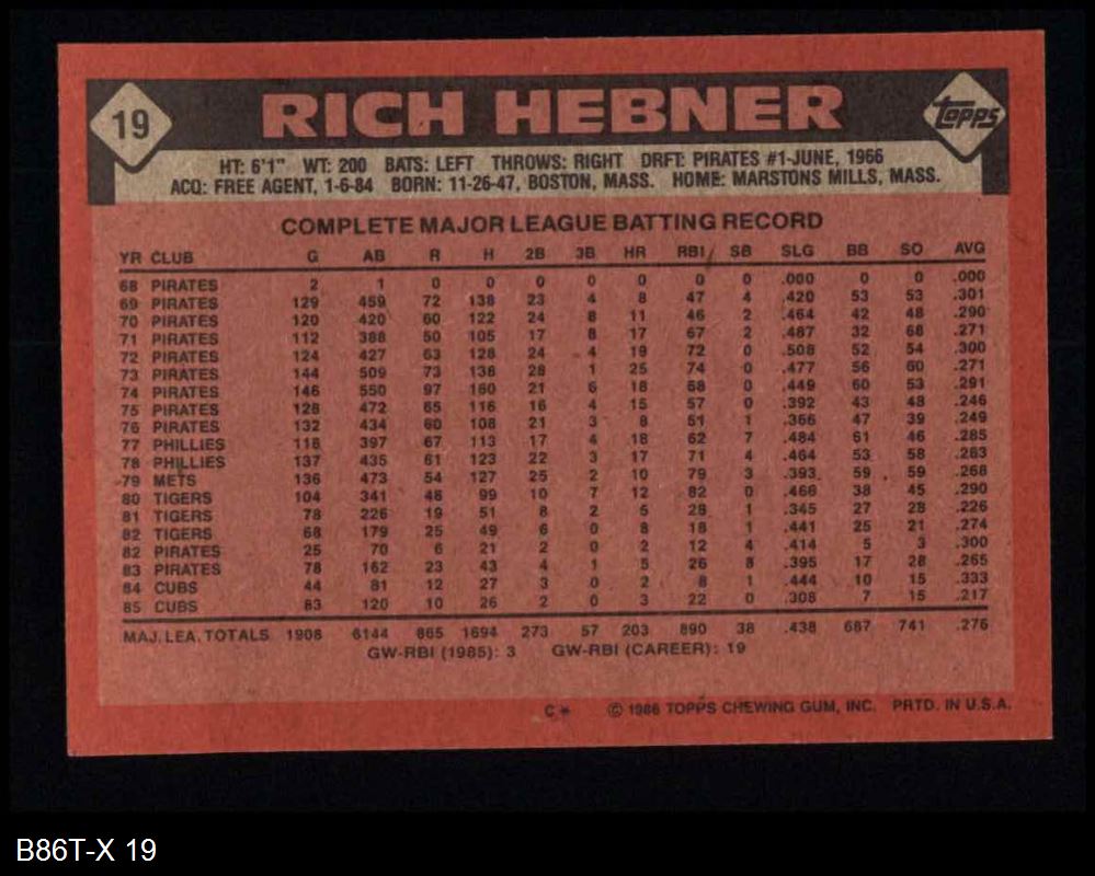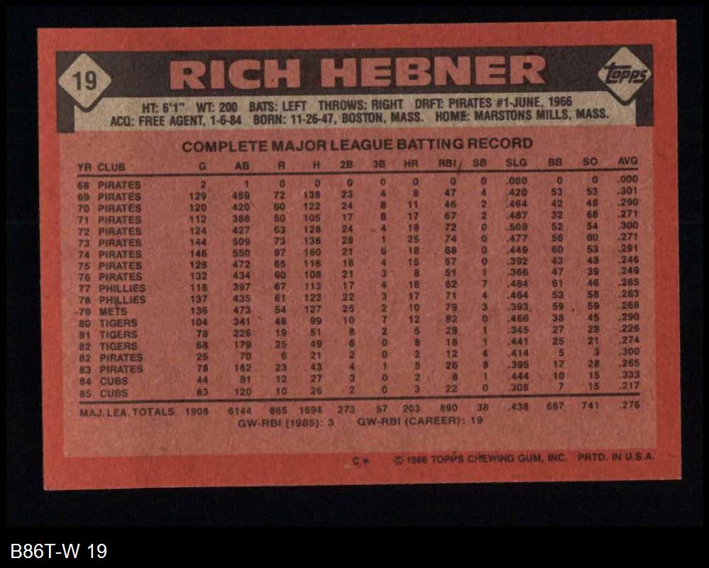 1986 Topps #19 Rich Hebner