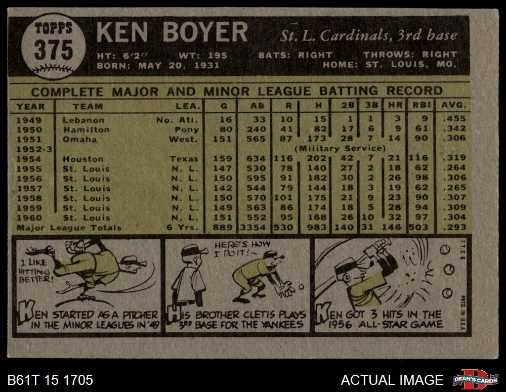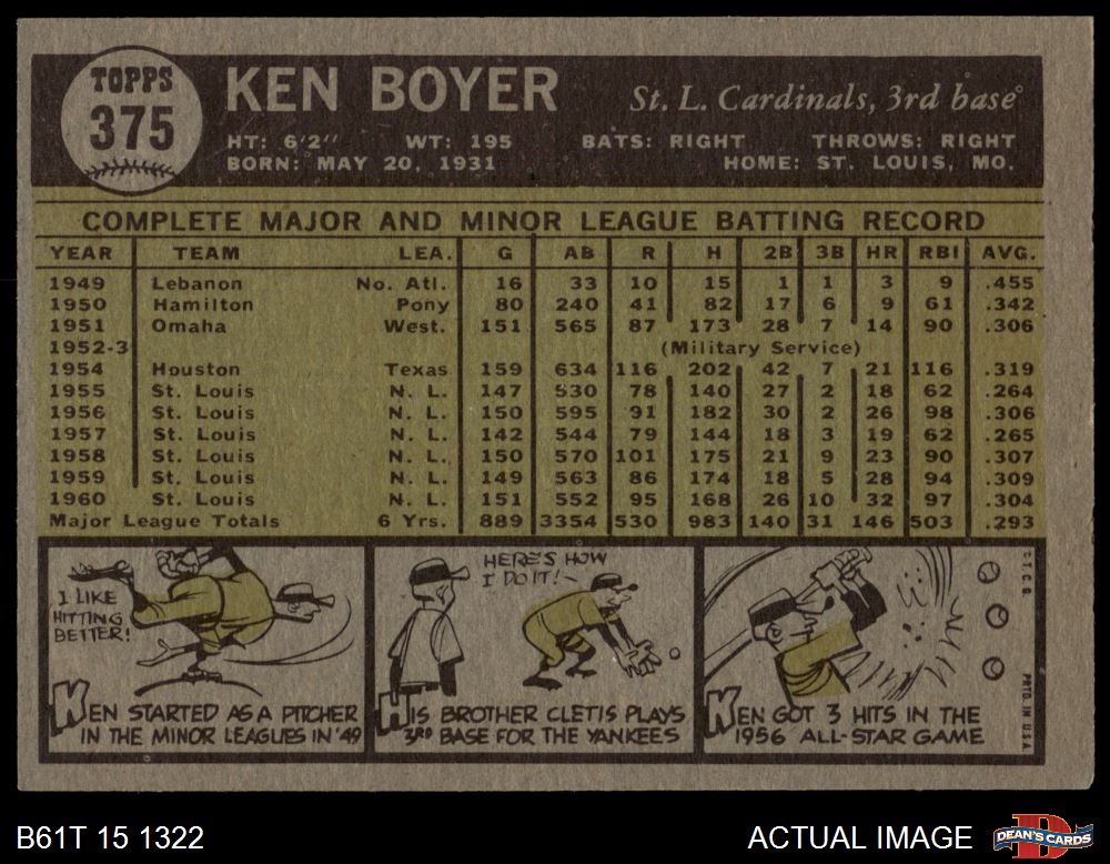 1961 Topps #375 Ken Boyer 3 - VG