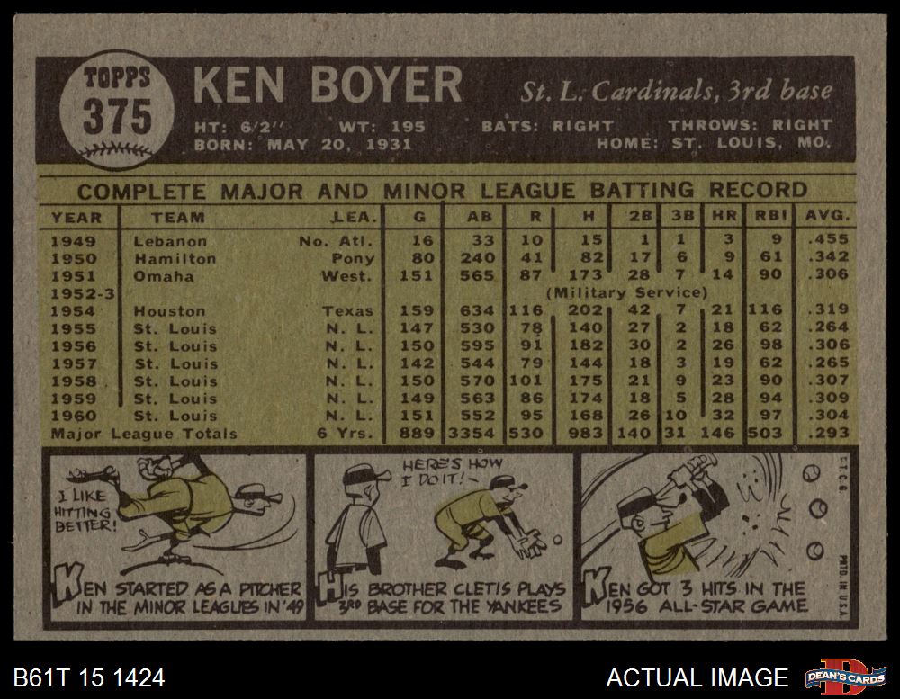 1961 Topps #375 Ken Boyer 4 - VG/EX