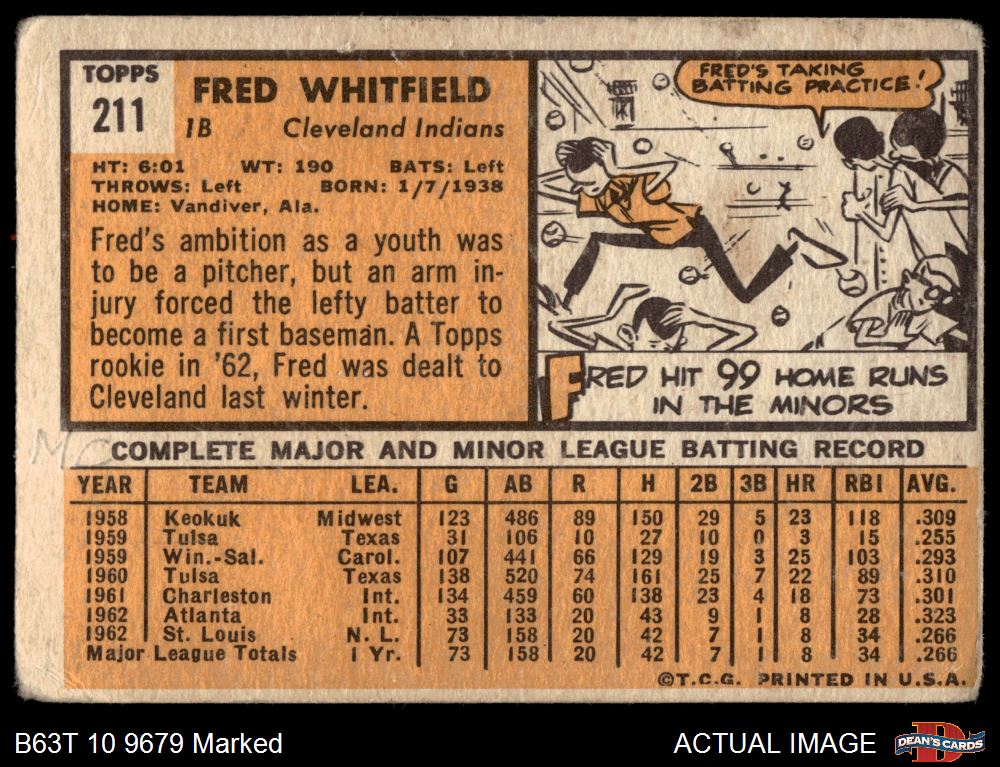 1963 Topps #211 Fred Whitfield 1 - POOR