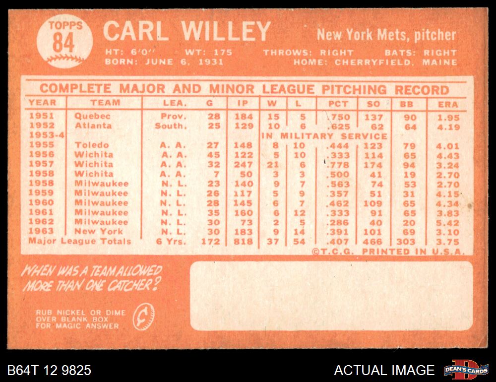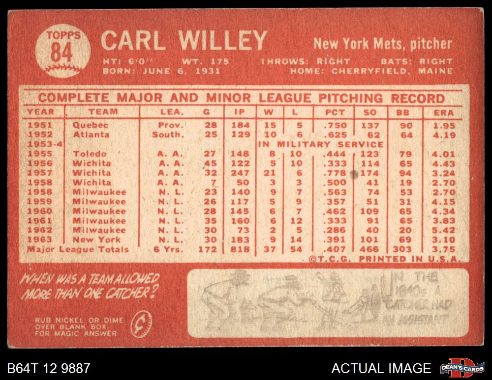 1964 Topps #84 Carlton Willey