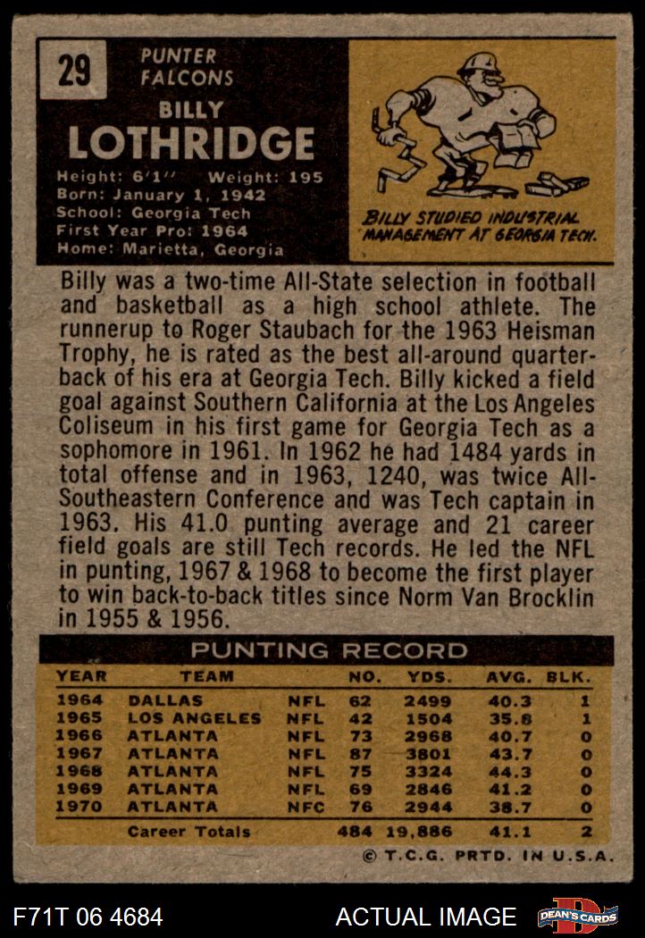 1971 Topps #29 Billy Lothridge 4 - VG/EX