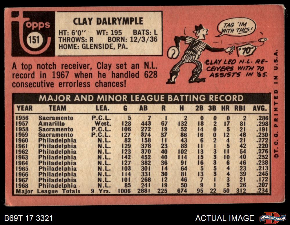 1969 Topps #151 PHL Clay Dalrymple 3 - VG