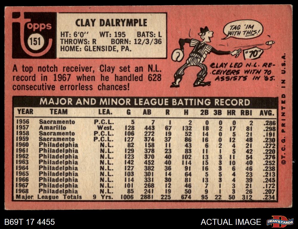 1969 Topps #151 PHL Clay Dalrymple 4 - VG/EX
