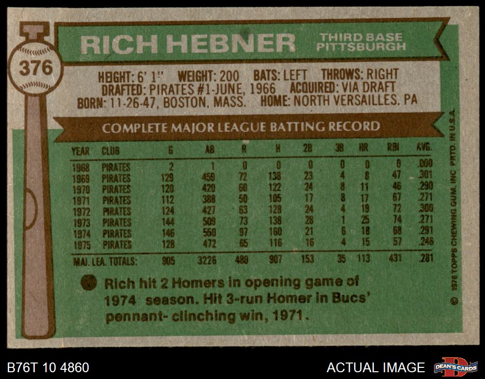 1976 Topps #376 Rich Hebner 5 - EX