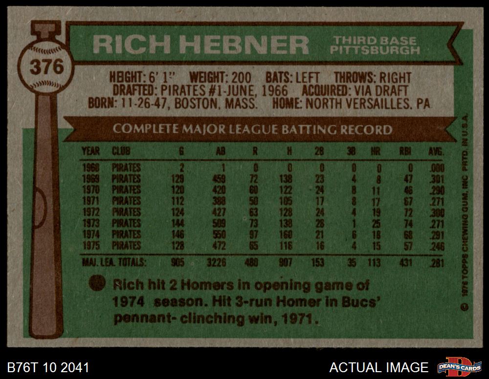 1976 Topps #376 Rich Hebner 7 - NM