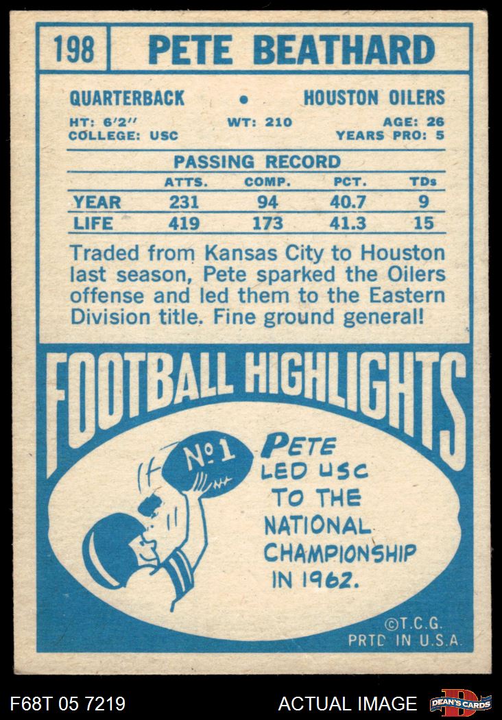 1968 Topps #198 Pete Beathard 4 - VG/EX