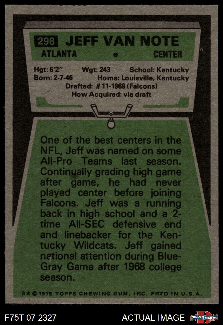 1975 Topps #298 Jeff Van Note 6 - EX/MT