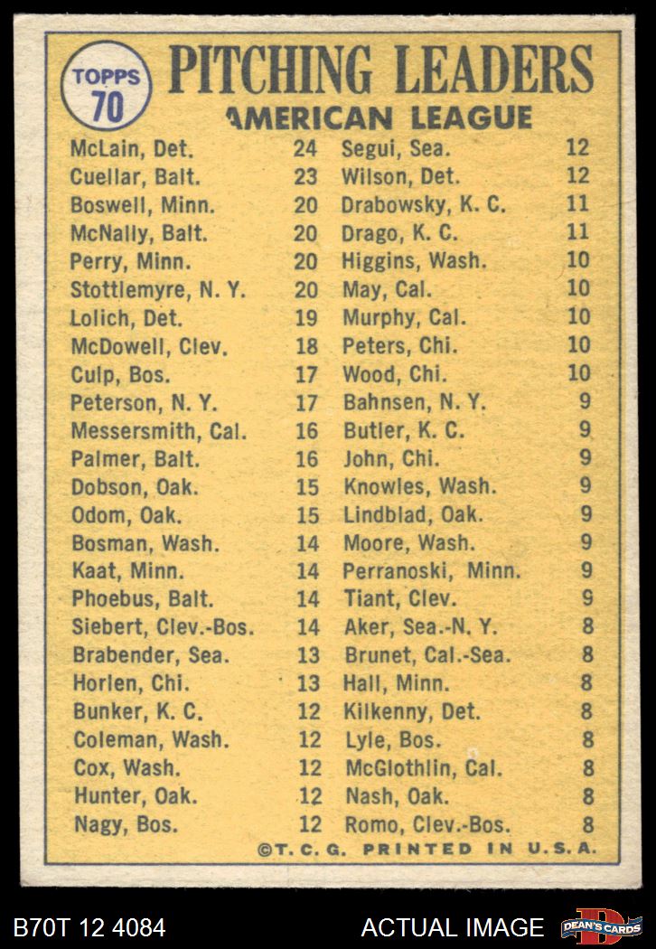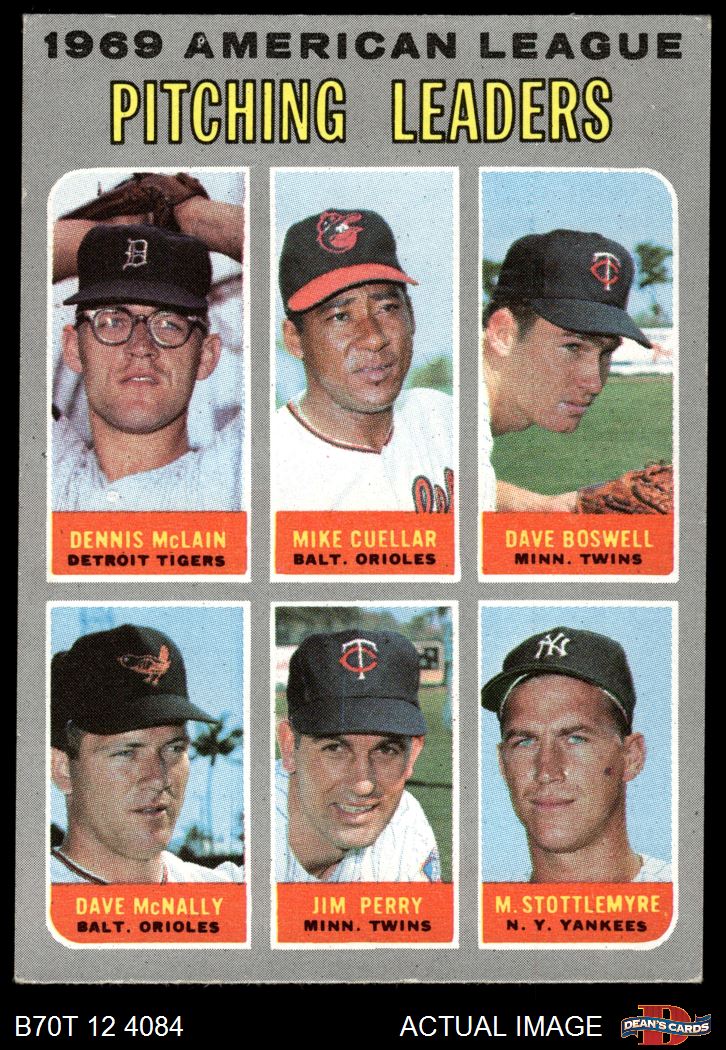 1970 Topps #70 COR - Dave Boswell / Mike Cuellar / Dennis McLain / Dave McNally / Jim Perry / Mel Stottlemyre AL Pitching Leaders 6 - EX/MT
