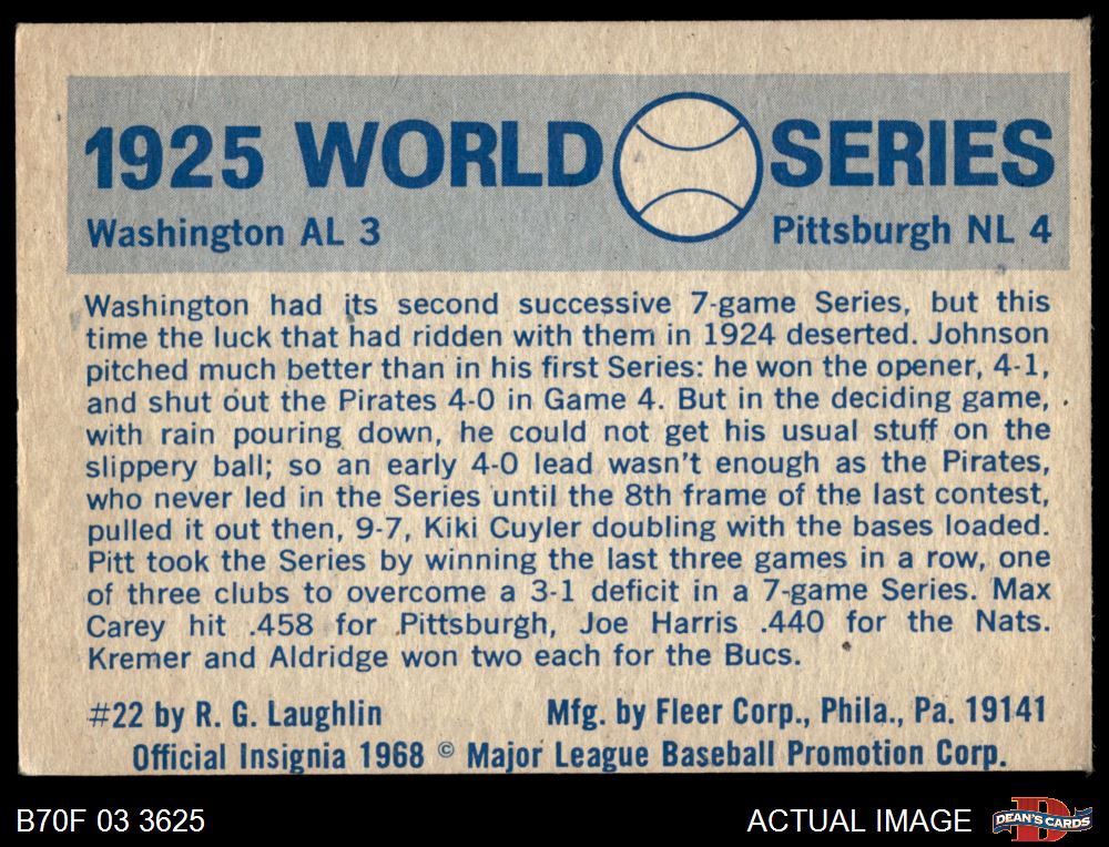 1970 Fleer World Series #22 - Walter Johnson 1925 Pirates vs. Senators 4 - VG/EX
