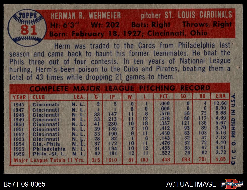 1957 Topps Baseball Cards (4,913 available)1957 Topps Cardinals (1,450 available)