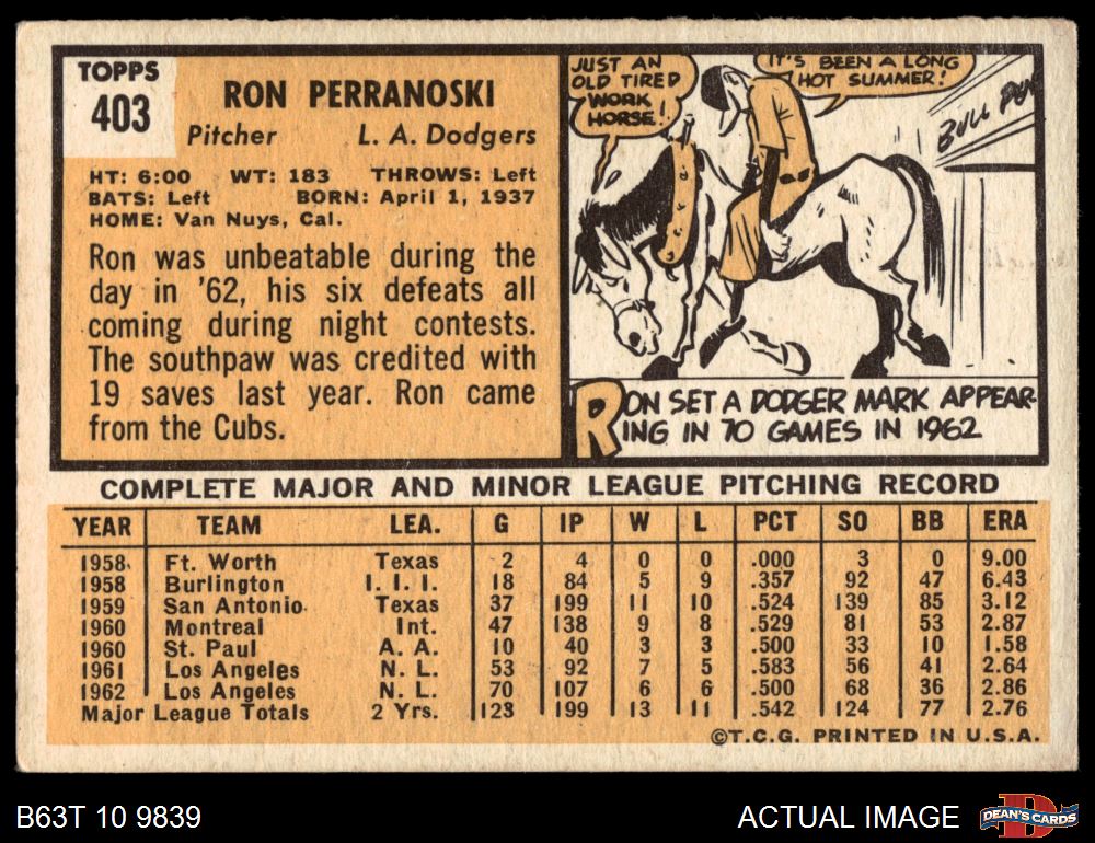 1963 Topps #403 Ron Perranoski