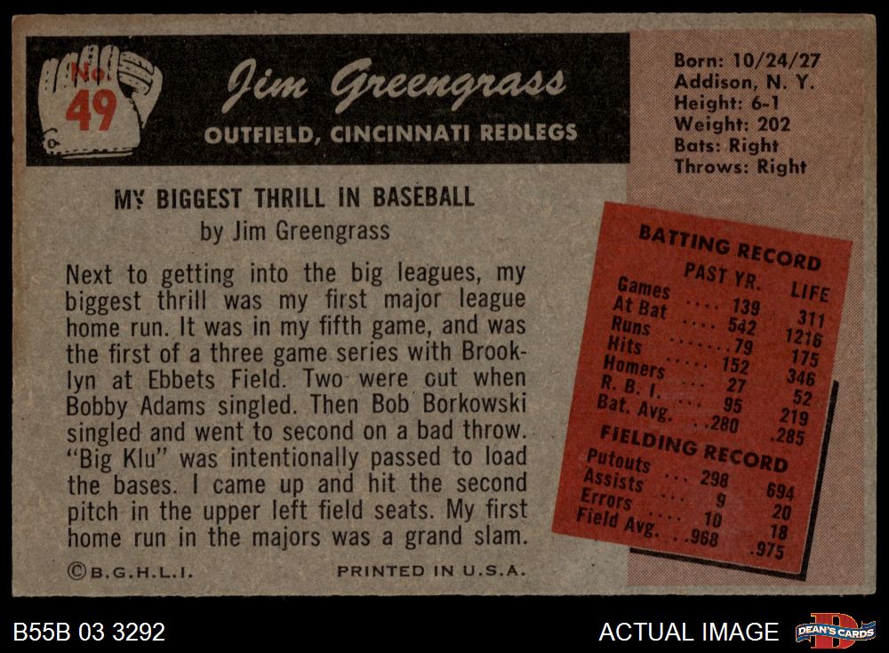 1955 Bowman #49 Jim Greengrass