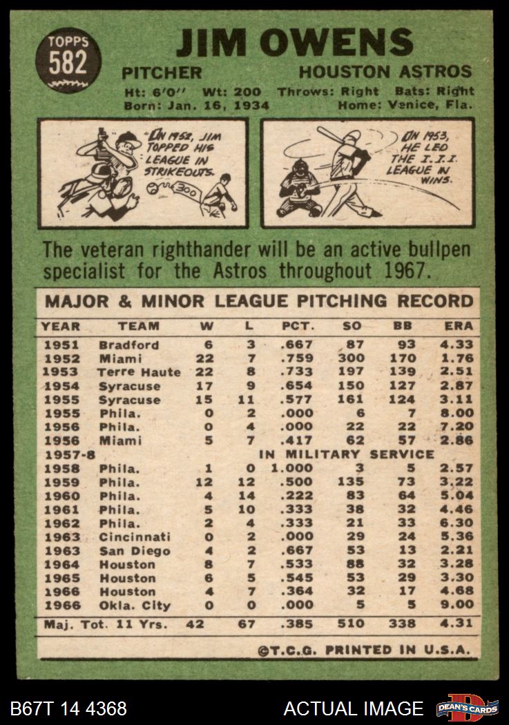 1967 Topps Baseball Cards (12,615 available)1967 Topps Astros (676 available)