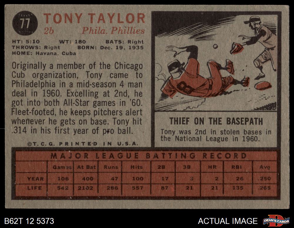 1962 Topps #77 Tony Taylor