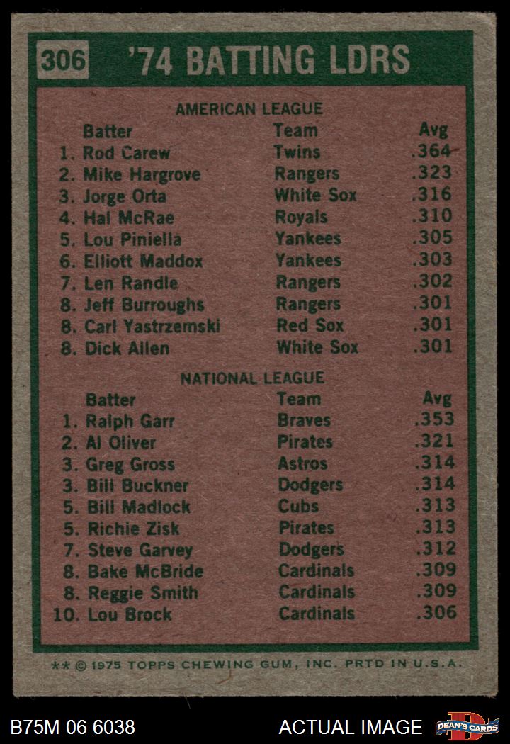 1975 Topps Mini #306 Batting Leaders