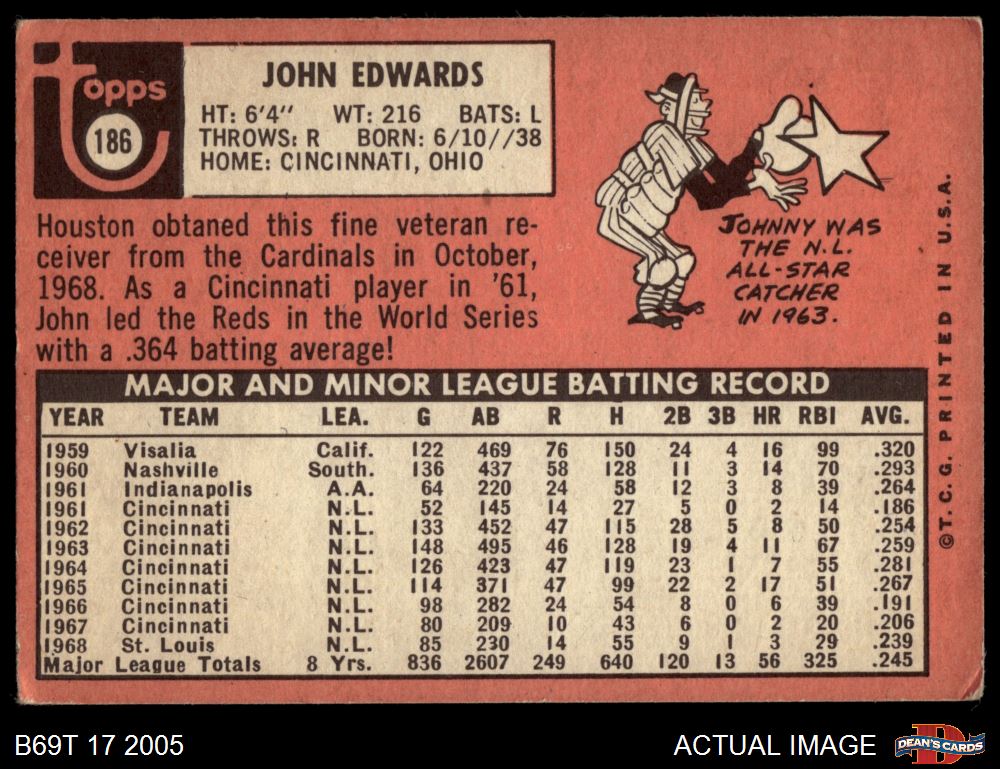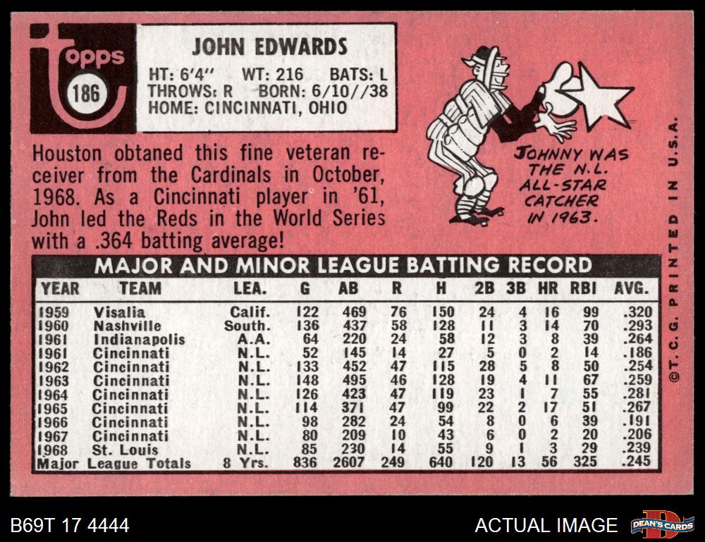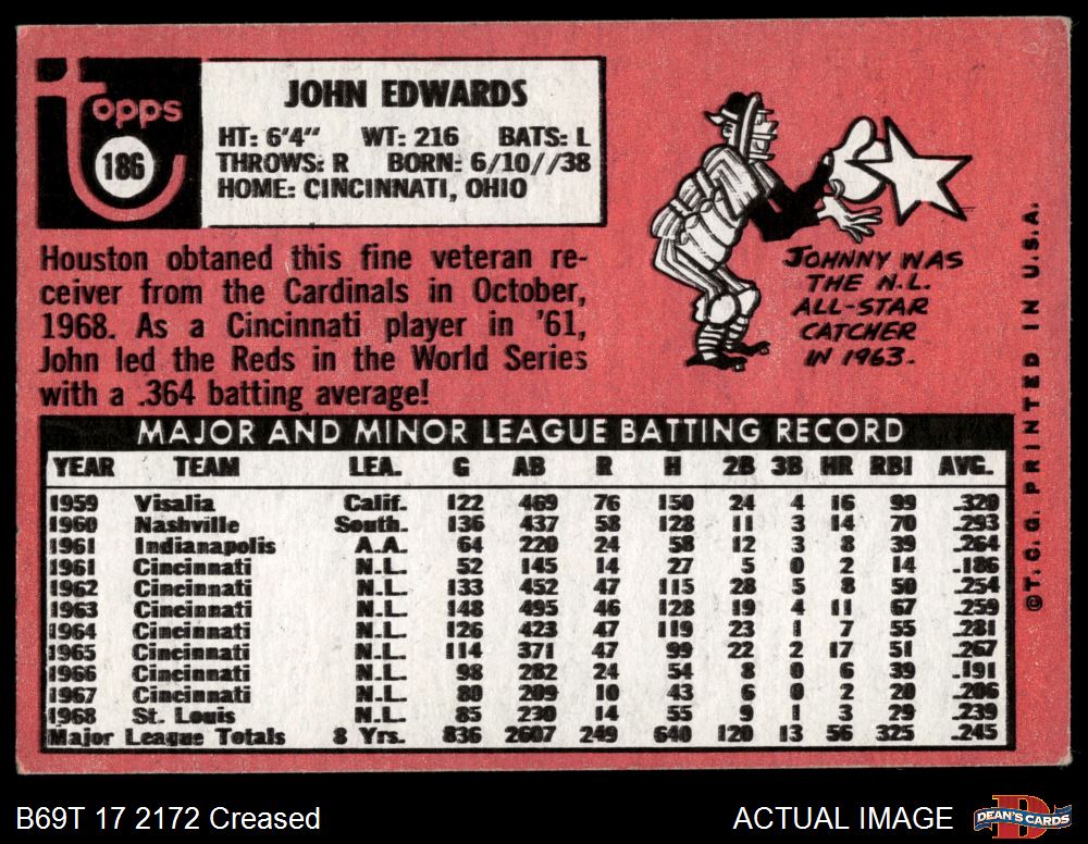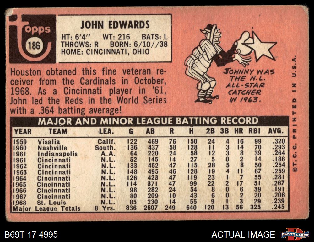 1969 Topps #186 Johnny Edwards