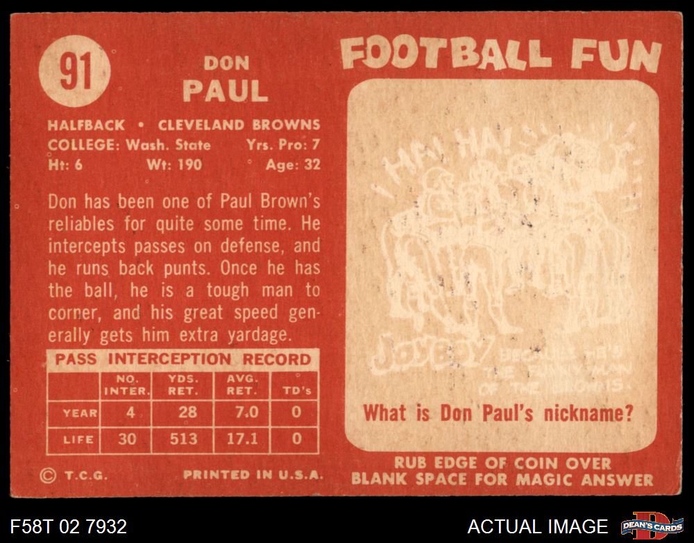 1958 Topps Football Cards (1,378 available)1958 Topps Browns-FB (106 available)