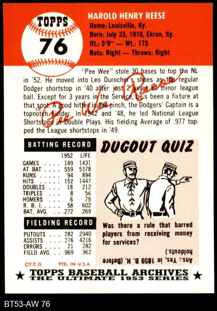 1953 Topps Archives #76 Pee Wee Reese 8 - NM/MT