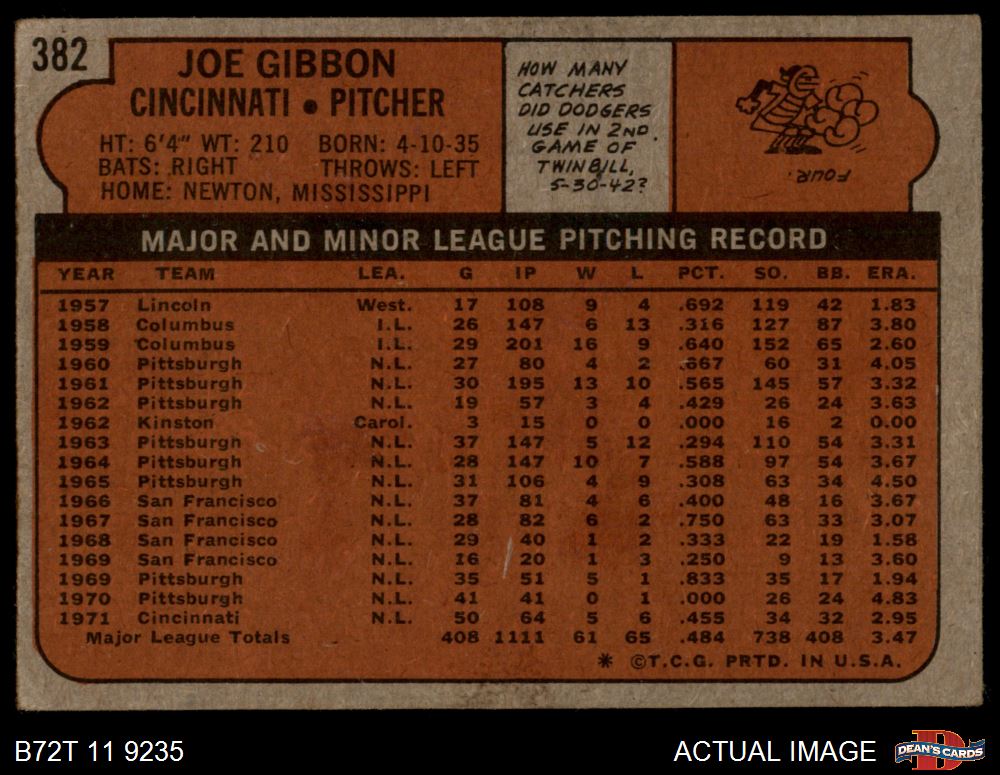 1972 Topps #382 Joe Gibbon 1.5 - FAIR