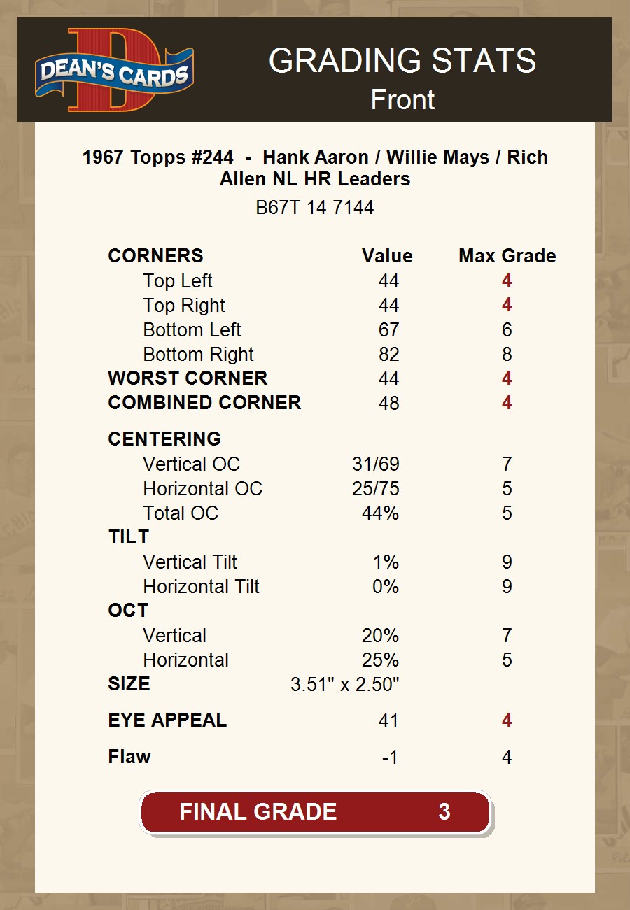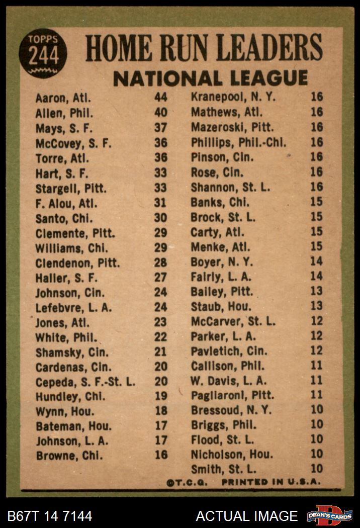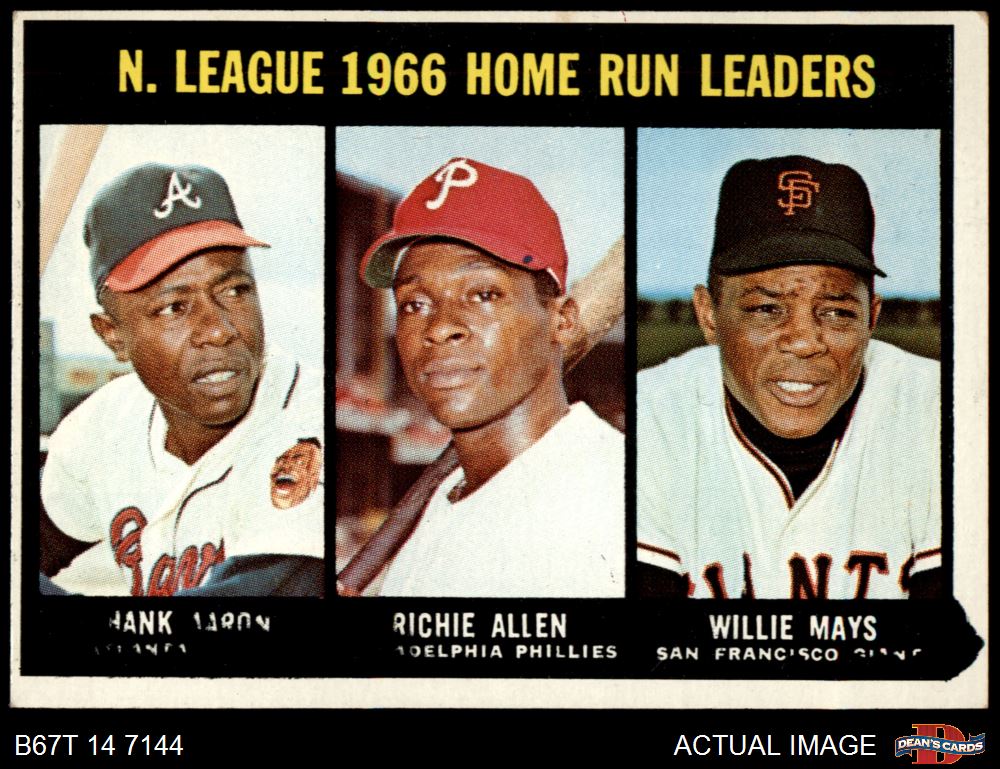 1967 Topps #244 - Hank Aaron / Willie Mays / Rich Allen NL HR Leaders 3 - VG