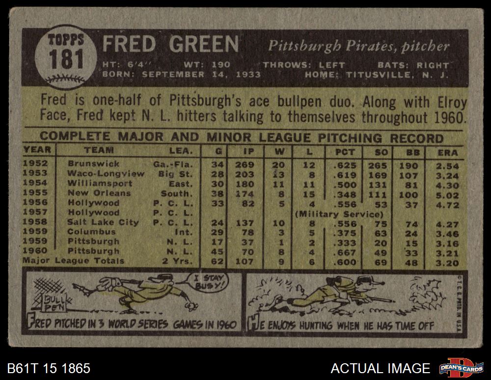 1961 Topps #181 Fred Green