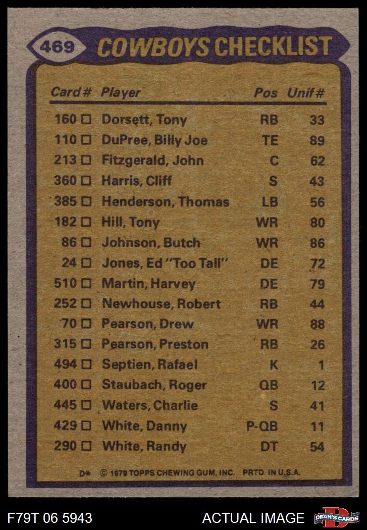 1979 Topps #469 - Tony Dorsett / Tony Hill / Benny Barnes / Harvey Martin / Randy White Cowboys Team Leaders & Checklist 8 - NM/MT