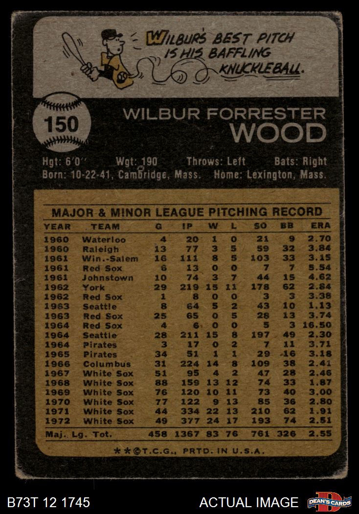 1973 Topps #150 Wilbur Wood 1 - POOR