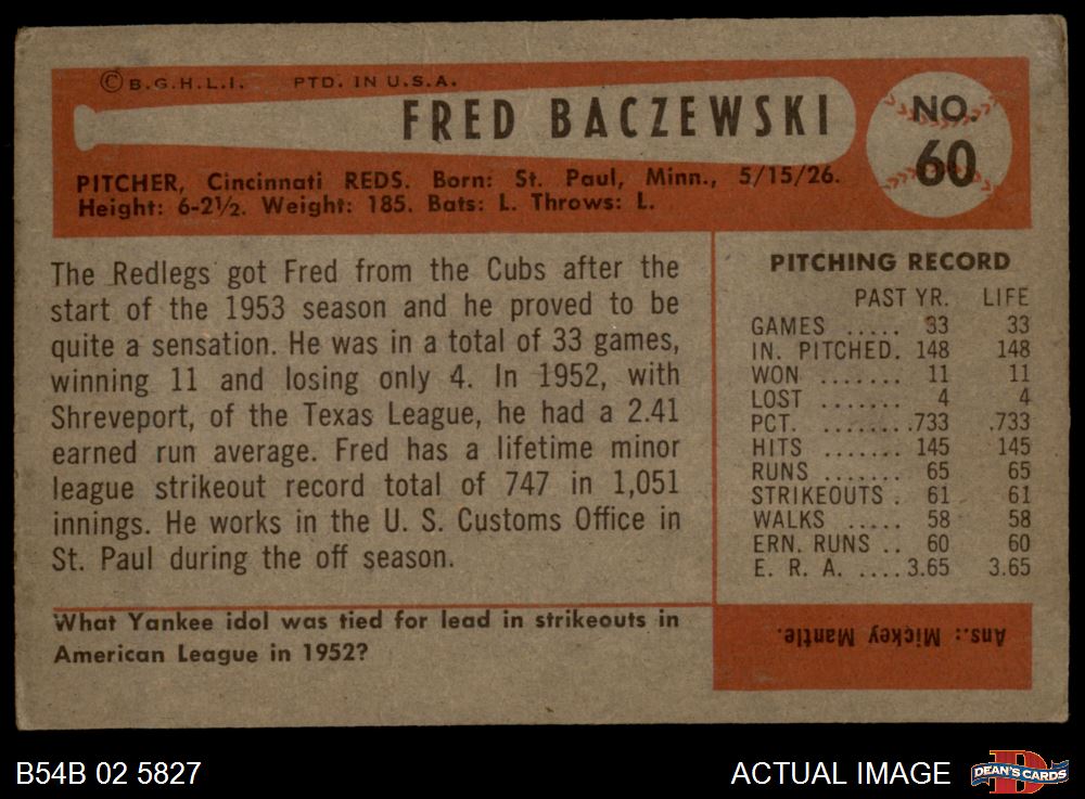1954 Bowman #60 Fred Baczewski 1.5 - FAIR