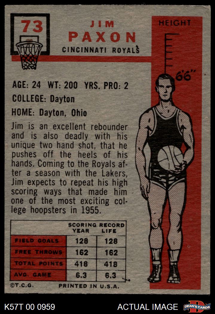 1957 Topps #73 Jim Paxson 4 - VG/EX