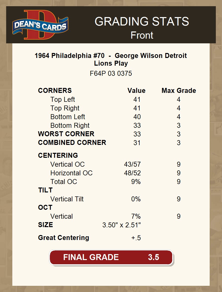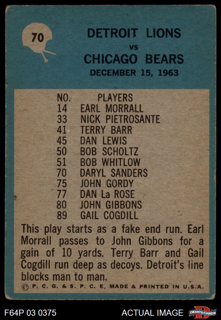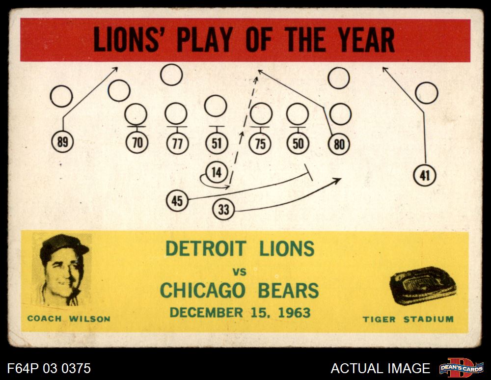 1964 Philadelphia #70 - George Wilson Detroit Lions Play 3.5 - VG+