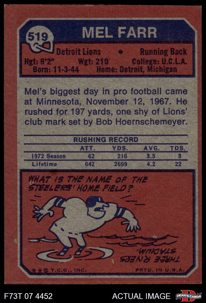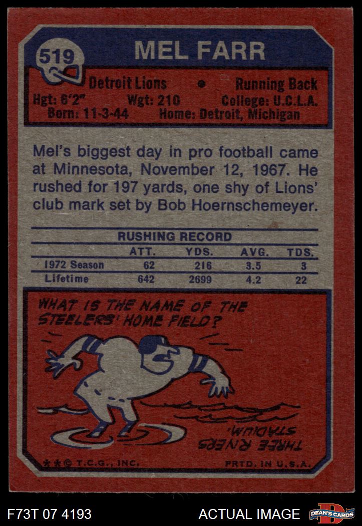 1973 Topps Football Cards (12,828 available)1973 Topps Lions (768 available)