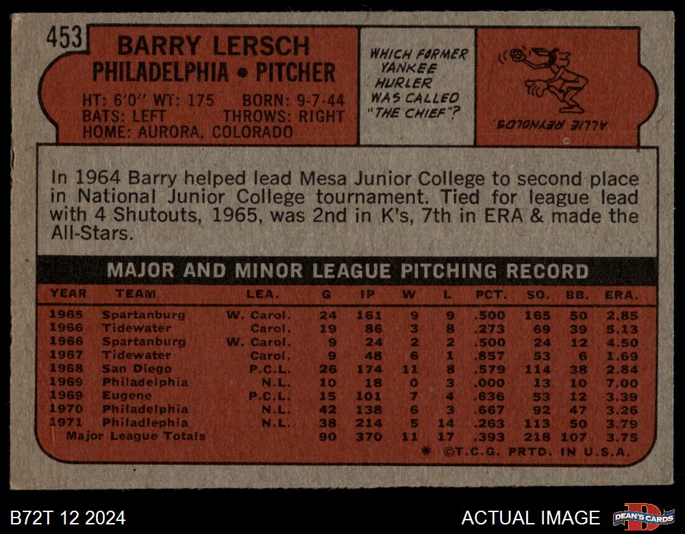 1972 Topps #453 Barry Lersch 2 - GOOD