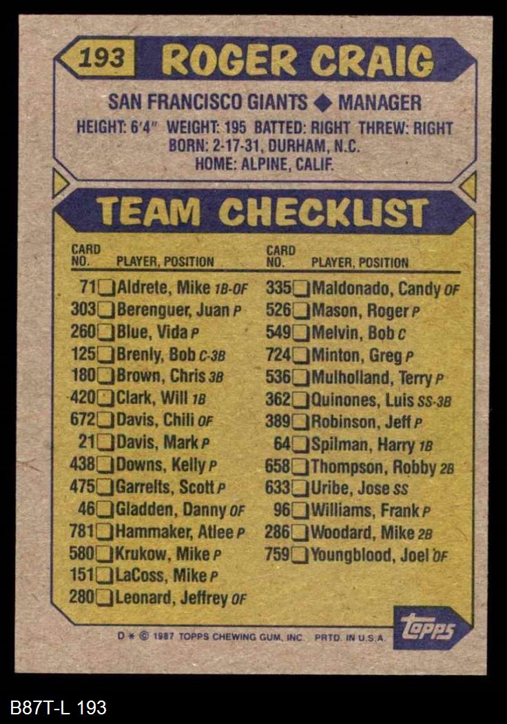 1987 Topps Baseball Cards (5,176 available)1987 Topps Giants (262 available)