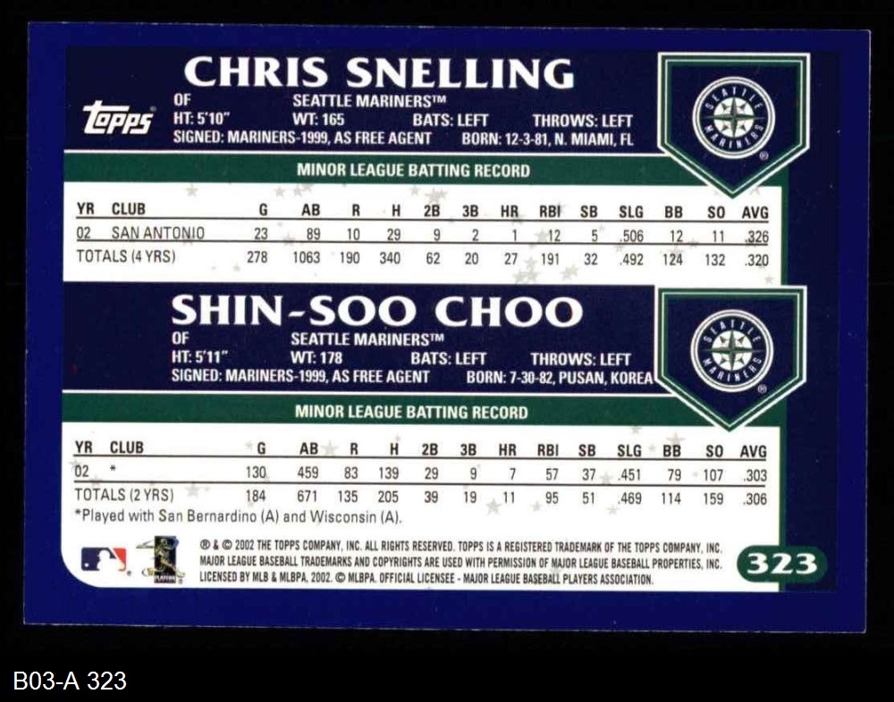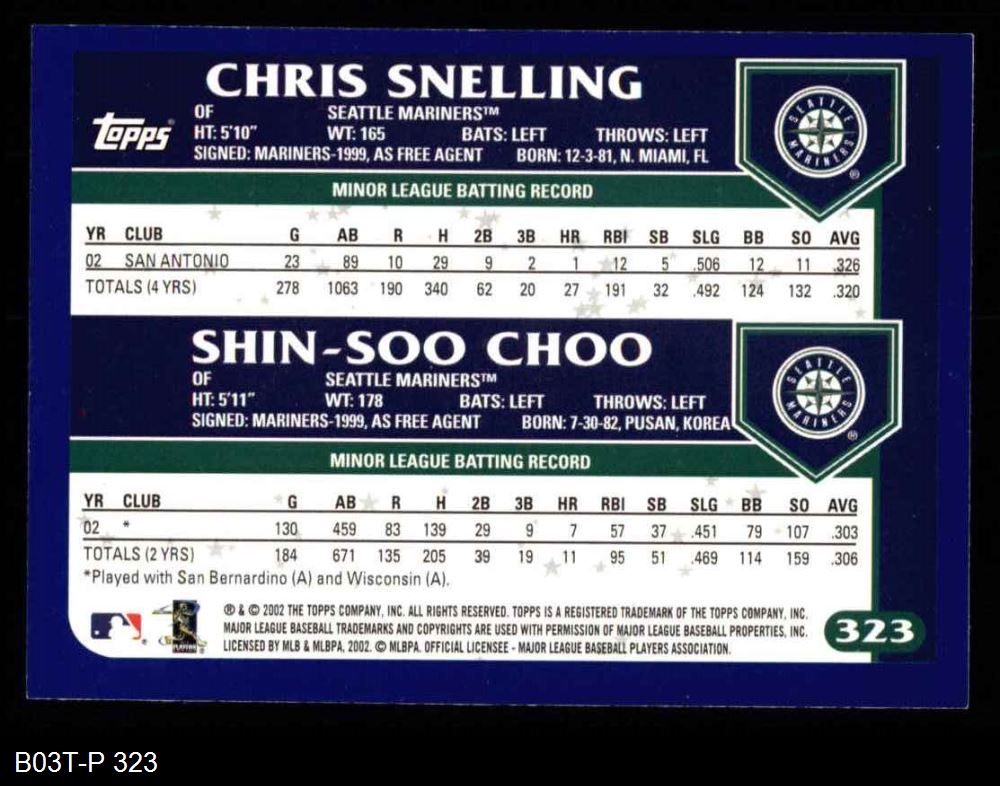 2003 Topps #323  -  Chris Snelling / Shin-Soo Choo Future Stars Front Thumbnail