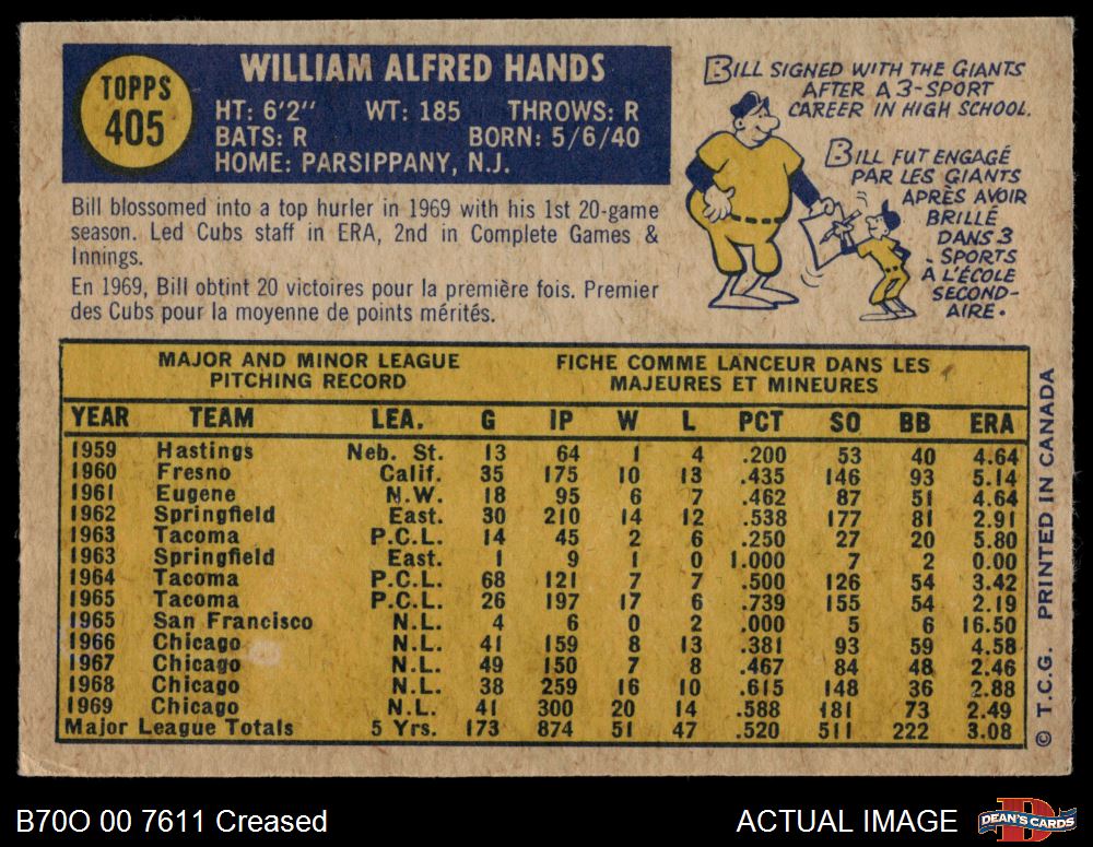 1970 O-Pee-Chee #405 Bill Hands Front Thumbnail