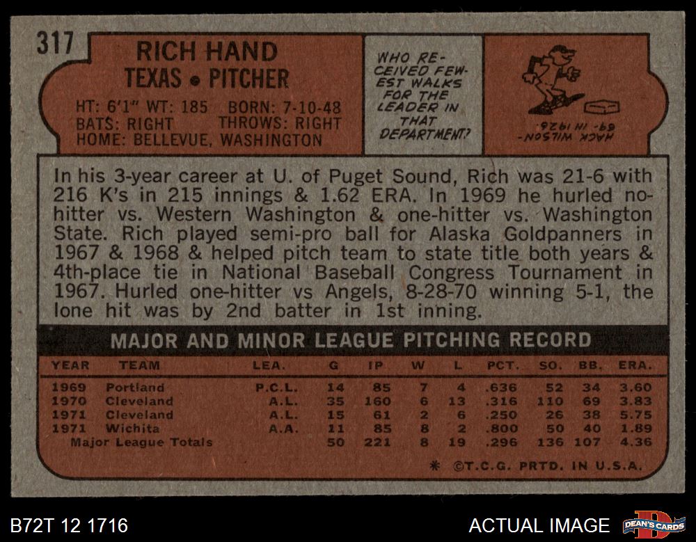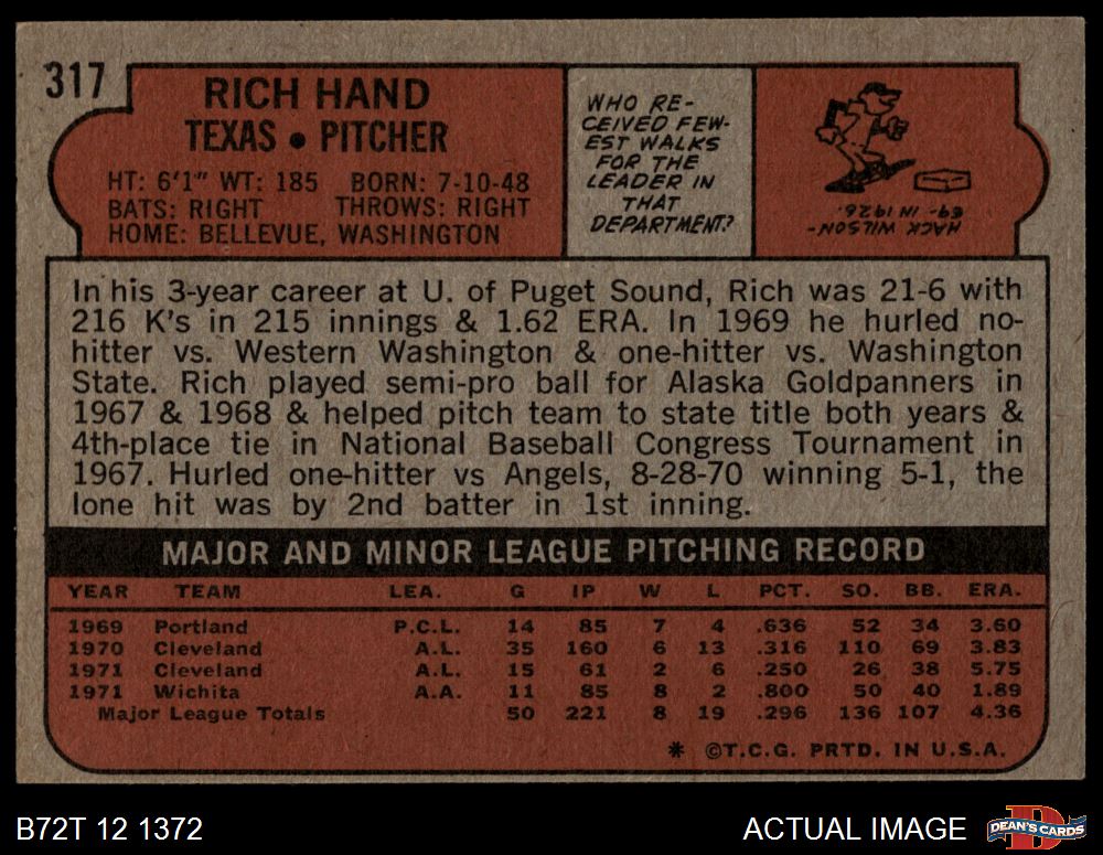 1972 Topps #317 Rich Hand