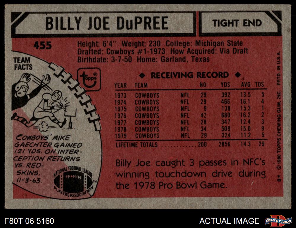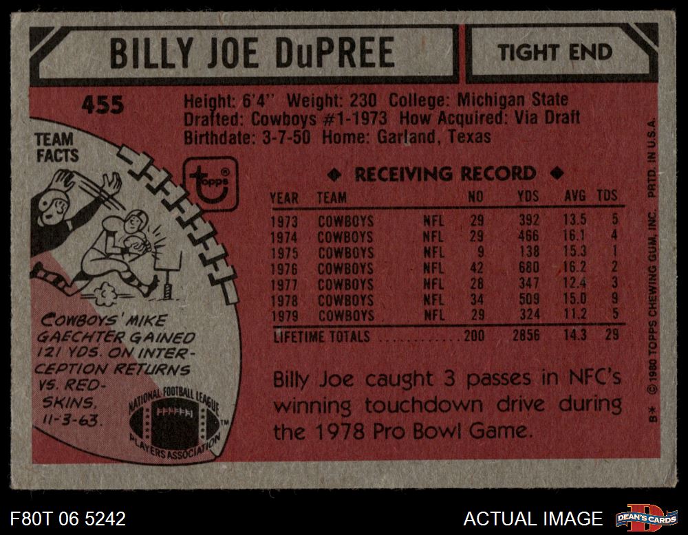 1980 Topps #455 Billy Joe DuPree 4 - VG/EX