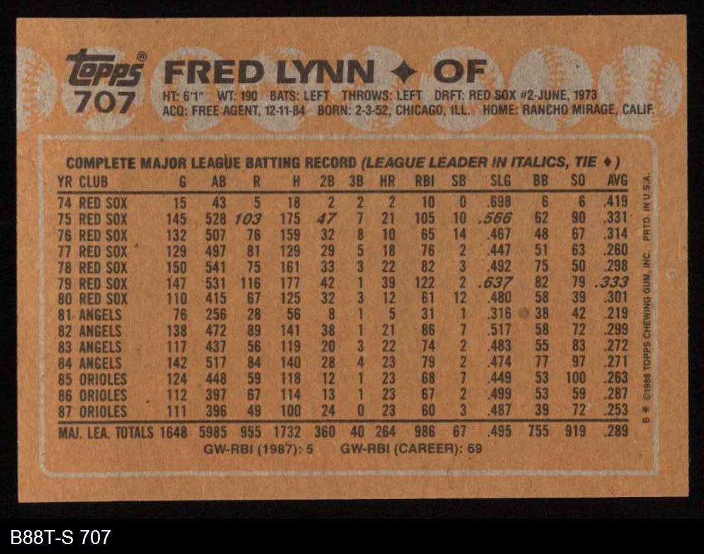 1988 Topps #707 Fred Lynn 8 - NM/MT