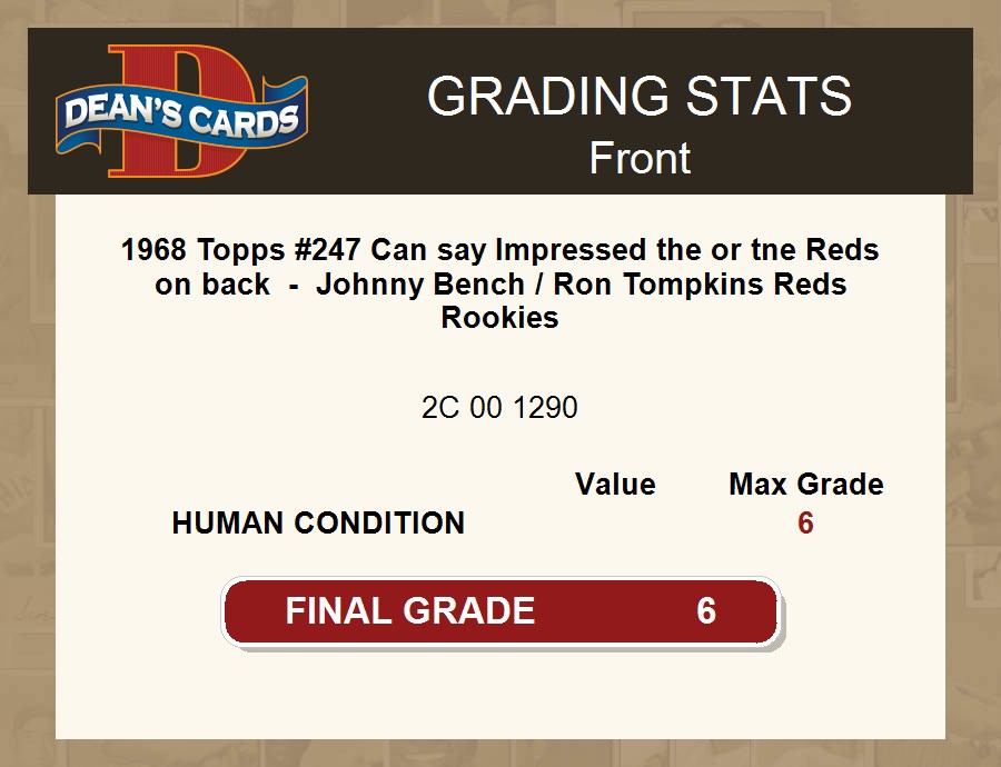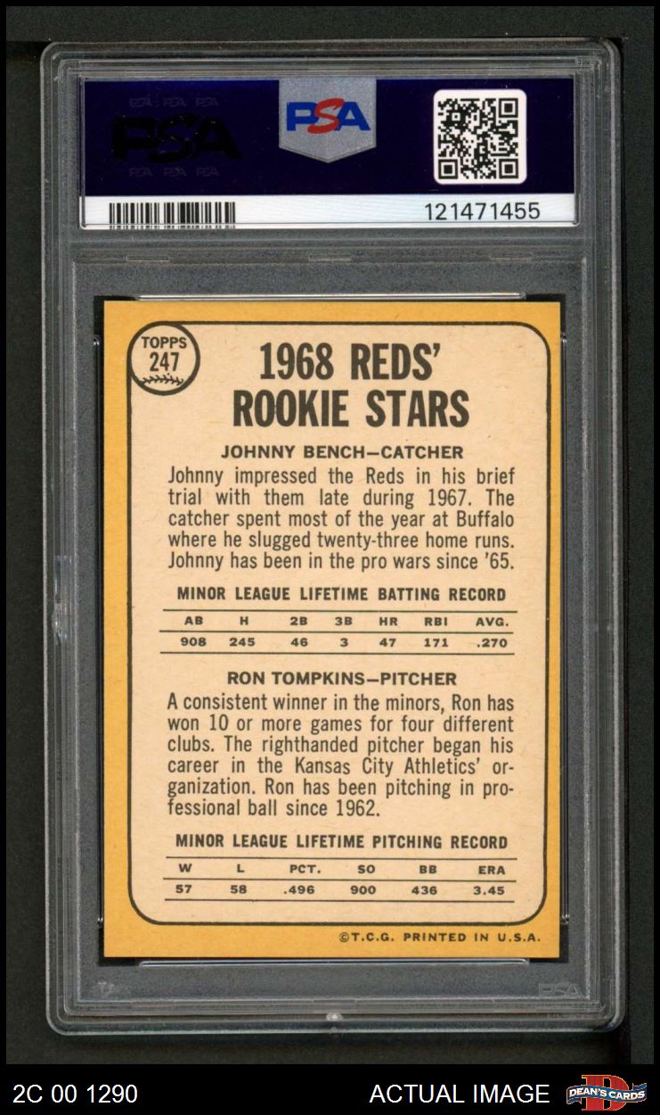 1968 Topps #247 Can say Impressed the or tne Reds on back - Johnny Bench / Ron Tompkins Reds Rookies PSA 6 - EX/MT