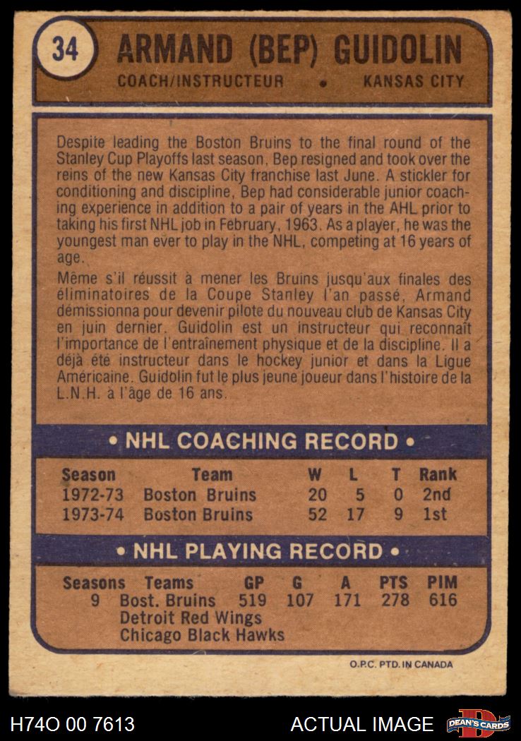 1974 O-Pee-Chee NHL #34 Bep Guidolin 4 - VG/EX