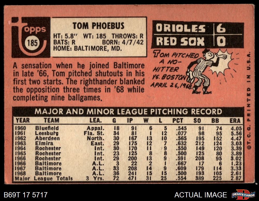 1969 Topps #185 Tom Phoebus AUTHENTIC