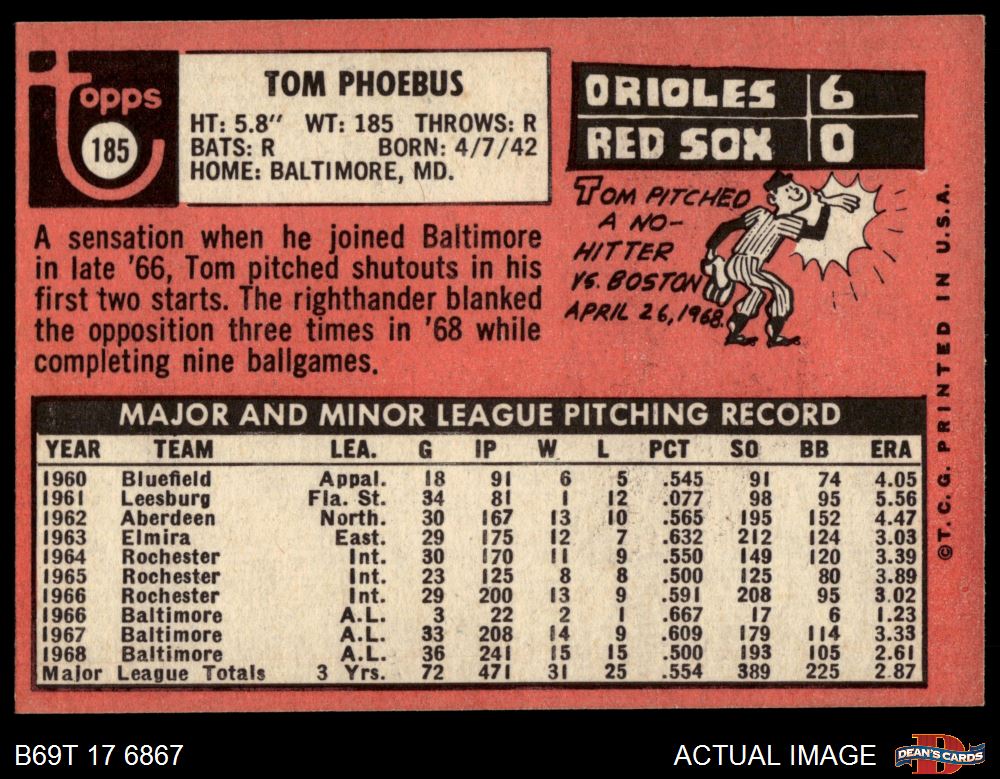 1969 Topps #185 Tom Phoebus 4 - VG/EX