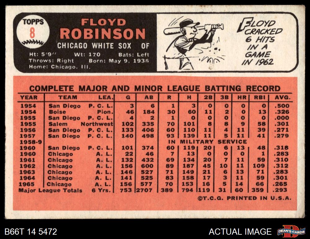1966 Topps #8 Floyd Robinson 2.5 - GD+