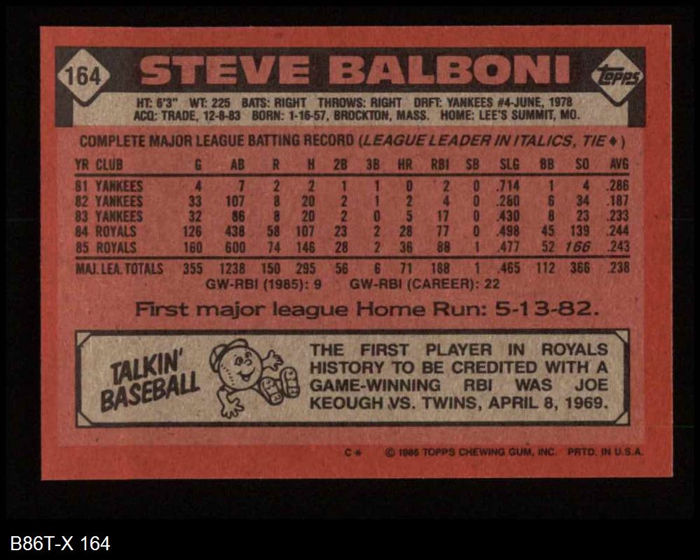 1986 Topps Baseball Cards (6,195 available)1986 Topps Royals (207 available)
